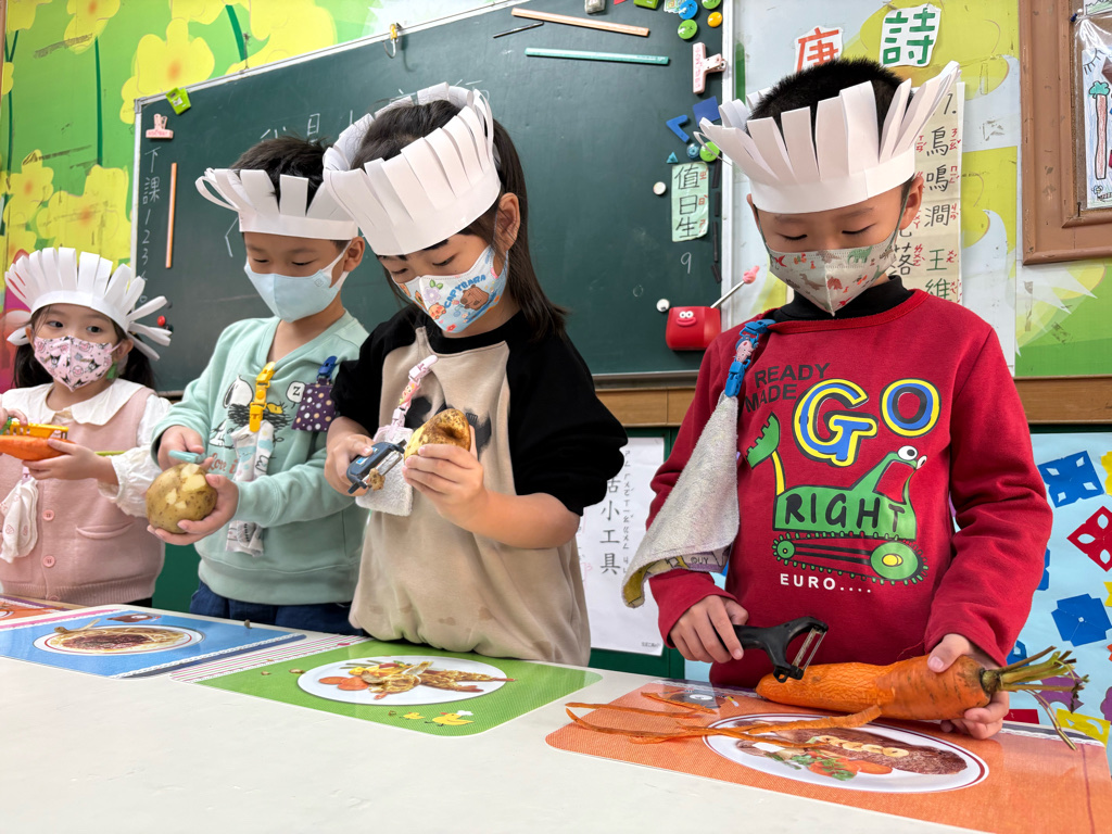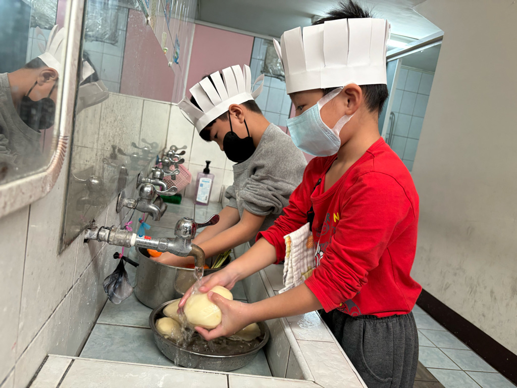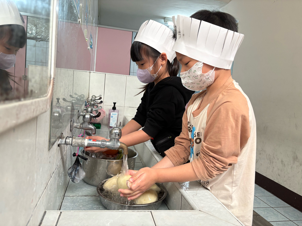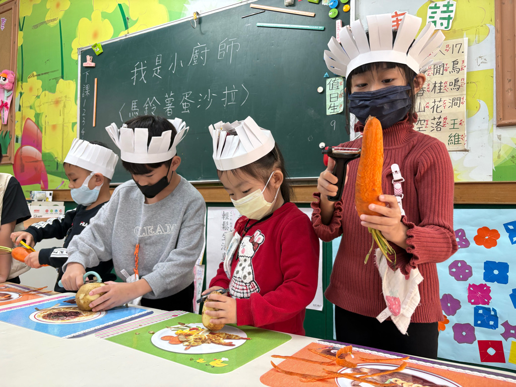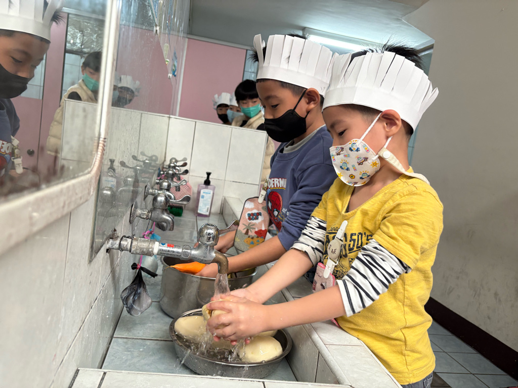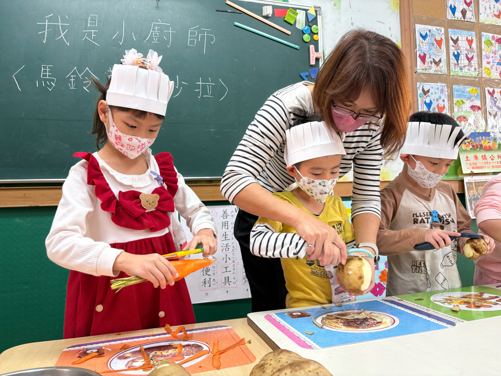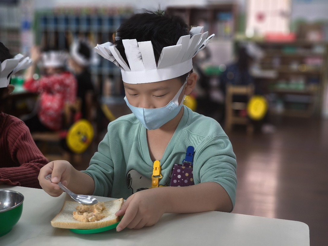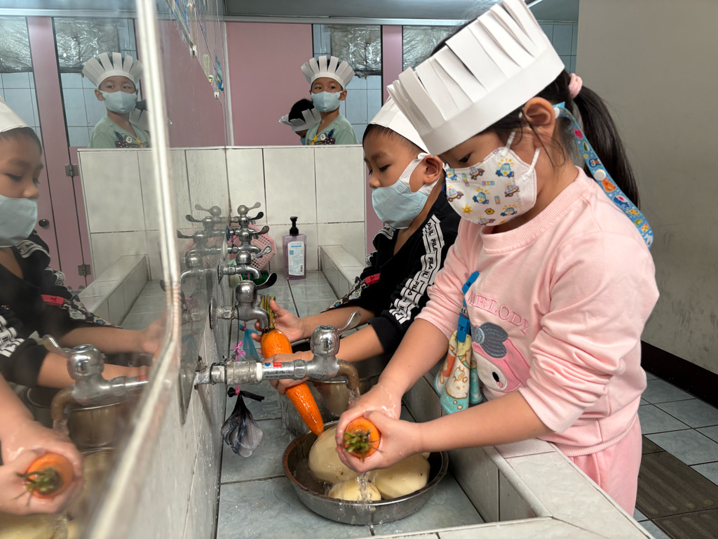 小廚師當然要有廚師帽囉!為了今天的主題活動我們製作了帽子、然後體驗清洗、削皮、切塊、烹煮、壓泥、調味、抹醬夾吐司、再來品嚐好吃😋的薯泥蛋沙拉嗯~太美味了😋