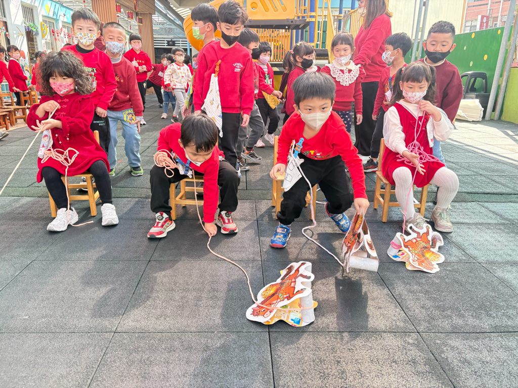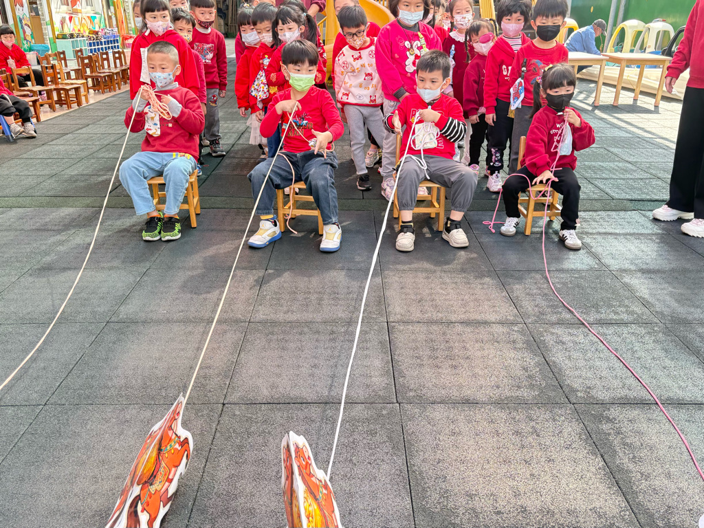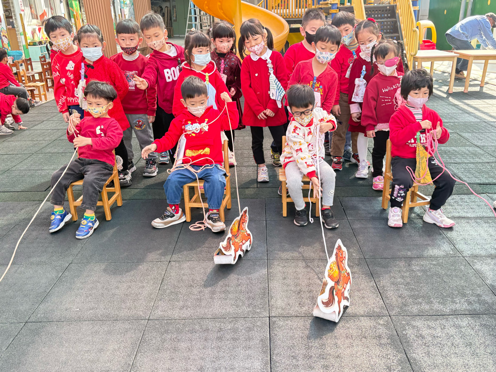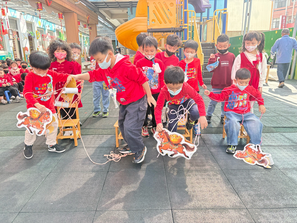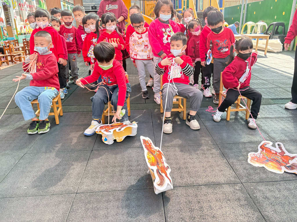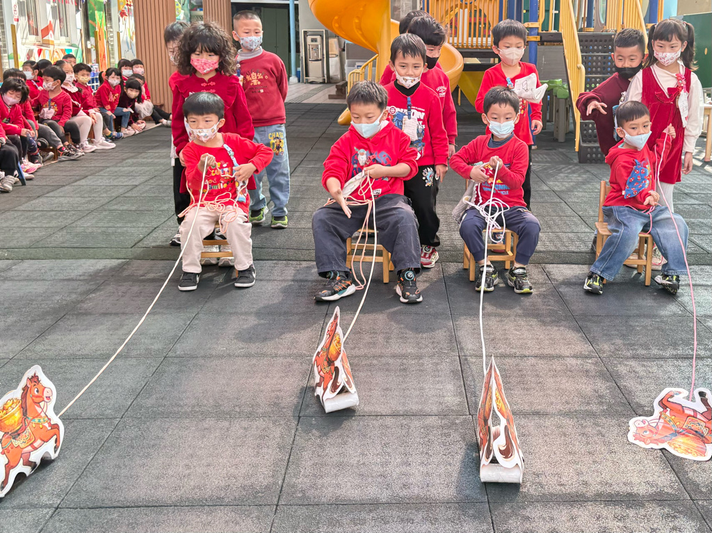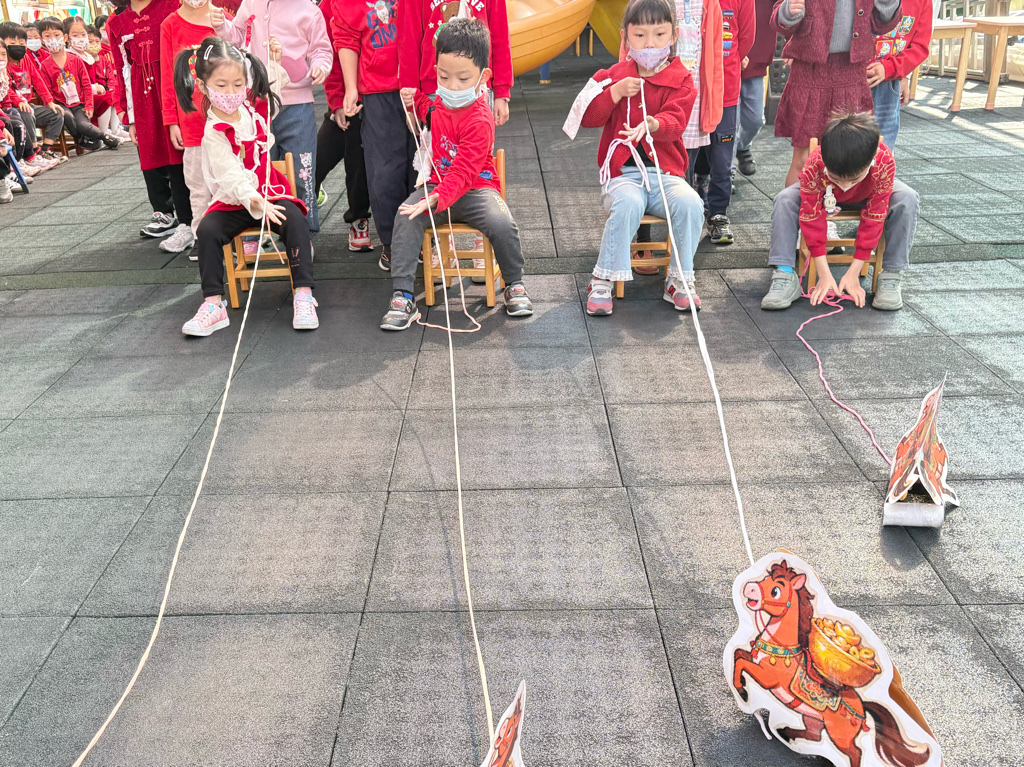 遊戲有送年貨、一馬當先、福氣滾滾來還有爆竹聲聲響,讓孩子在歡樂氣氛中體驗新年過節的氣氛。