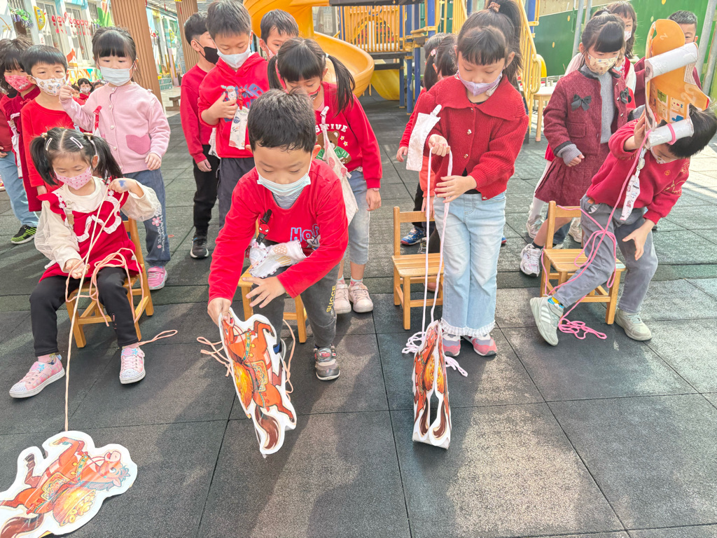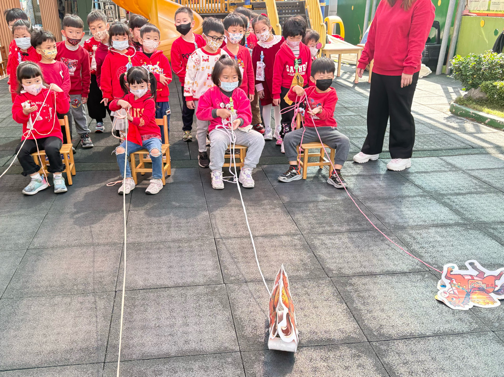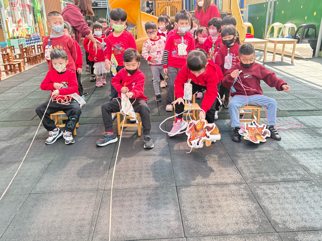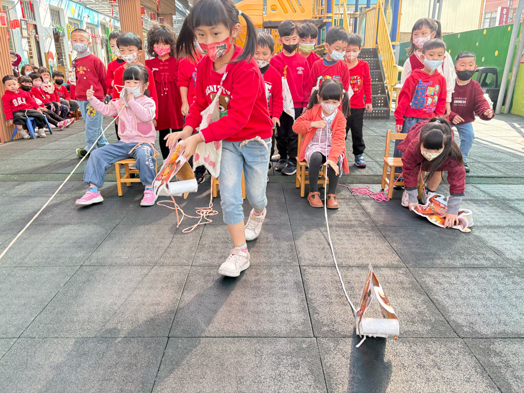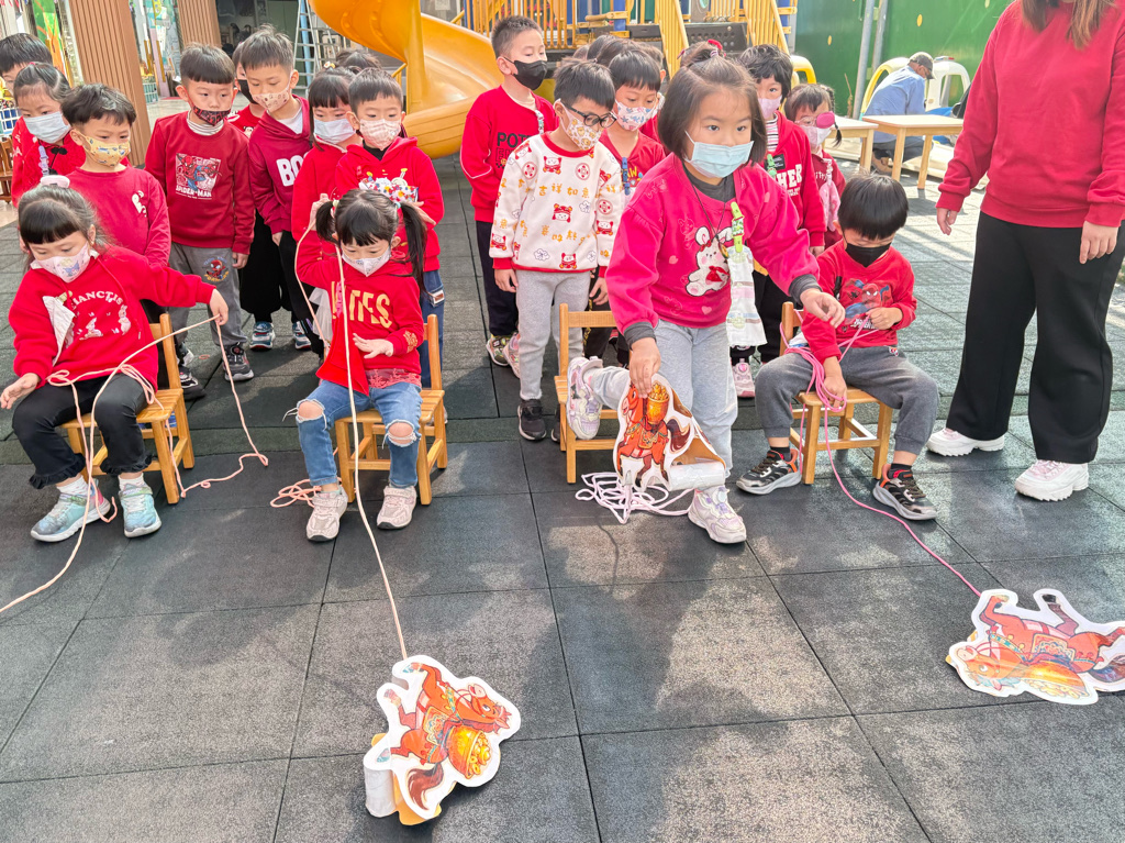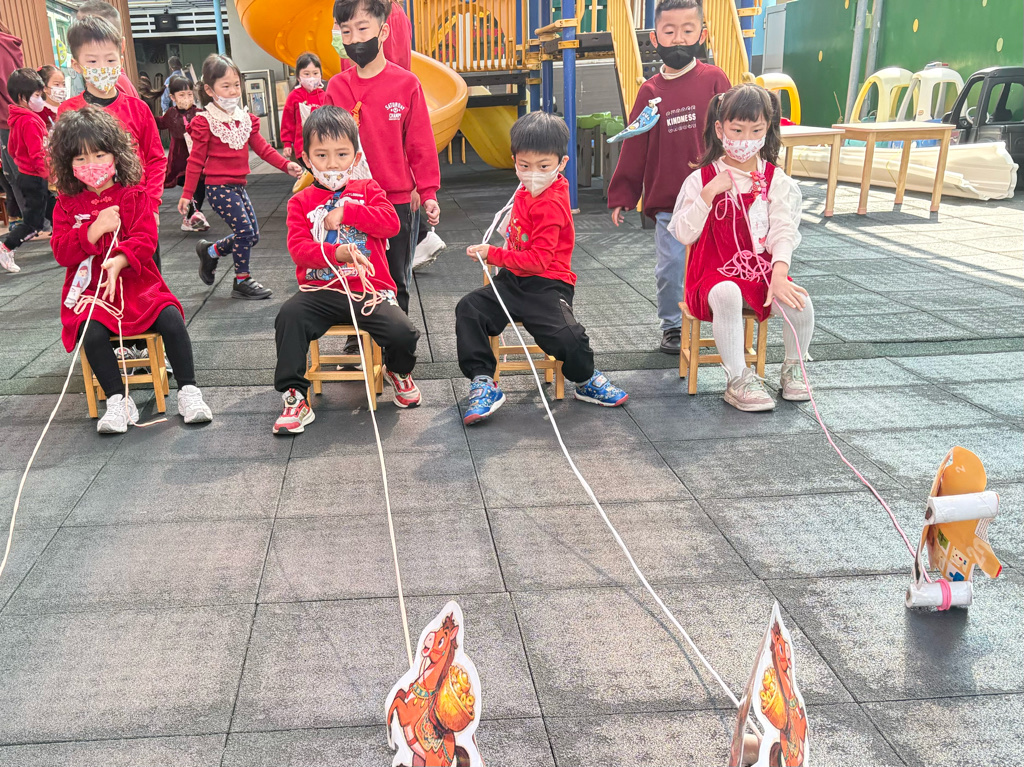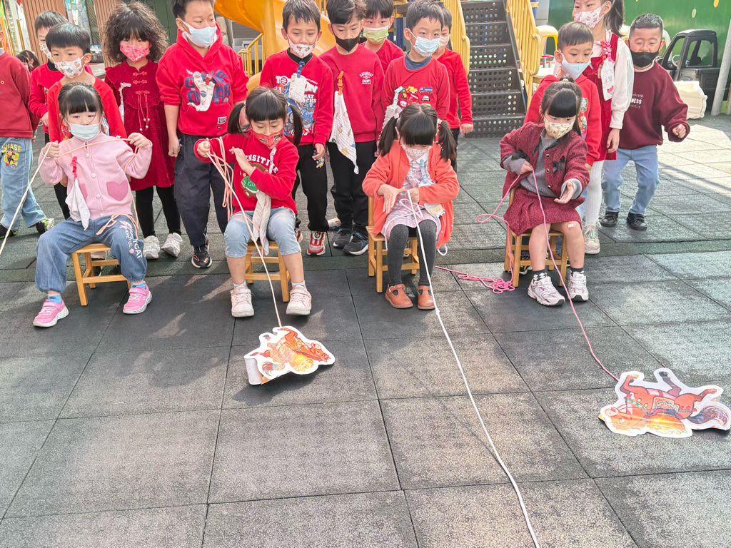 遊戲有送年貨、一馬當先、福氣滾滾來還有爆竹聲聲響,讓孩子在歡樂氣氛中體驗新年過節的氣氛。